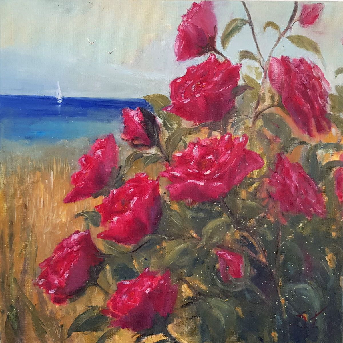 Red Roses by the Sea